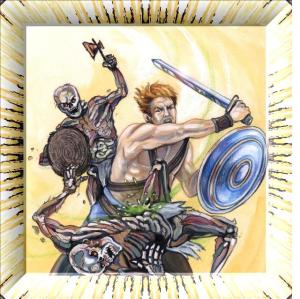 He could see that it was a dog. More prowled around the couple, rattled by the pack leader’s death, keeping their distance while trying to build up courage for an attack. The Achaean picked the largest animal out, advancing on it in three long strides. The animal stood its ground, growling and crouching down to pounce. The long bronze sword curved a glittering arc that ended on the dog’s head, the heavy blade near splitting the skull in two. The beast dropped without a sound, breaking the pack’s resolve and the rest fled.