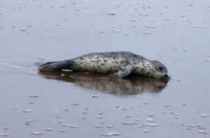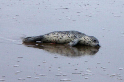 I got in two walks on the beach. On the second, walking with three others from the workshop, we encountered this newborn seal pup that had come ashore to rest. What an amazing sight! The pup got rolled around and pushed farther up the beach by the surf. After a while it started crawling up the beach on its own, and paused to cry now and then. That was heartbreaking, but we knew its mother was nearby in the water, watching, and that the pup would be all right.