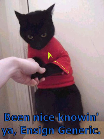 Why do I insert people I know who have pissed me off? (No, “piss” is not a rude word where I grew up. It’s ‘earthy’). It’s therapeutic. I get to have fun researching bizarre and horrible ways to die and I get to let off steam by putting someone I’m angry with in the role of Ensign Cannonfodder and writing their horrible death.