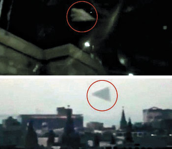 Take the recent sighting of the UFO over the Kremlin (see inset photo – from Courier Mail). I kind of blinked when I saw this blurry image, which looks exactly like one of the smaller Stargate Goa’uld spaceships, the Tel’tak scout-ship. In fact the whole triangular (pyramid-like) shape was just a little two weird a co-incidence. Especially having something like a Goa’uld spaceship (say commandeered by SG1) hovering over the Kremlin is something I could have expected straight from a Stargate series script. Maybe April Fool’s Day is in December in Russia.