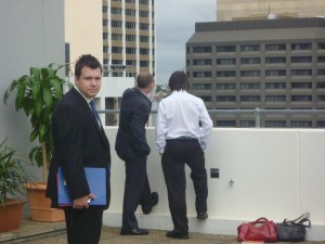 My wife was highly amused to see us rabbiting on about the restoration of the old Brisbane town hall (as was his minder). See photo below: