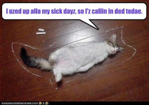 >Rowena, you're nicer than I am. I am much more than annoyed and trying to figure out if there is anything I can do to help these kids.The LOLcat was the perfect image of how I felt this morning. At least I seem to be getting over it. Of course, I want to take a nap every hour, so nothing's getting done.As for the virus, it started at Flinders…ask Sarah. She said Dave gave it to her. So we'll just blame him. ;-p