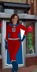 *the picture is my son’s cartoonified version of me, as “super writer” in front of my favorite diner. Yeah, he DID “superhero” the body a bit.*