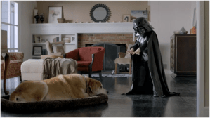 What’s interesting about this, is that there is no need for an explanation. It relies on the viewer knowing that the child is trying to use ‘the force’ on objects and animals. When Star Wars came out in 1978 anything to do with speculative fiction was way out in left field. Now it is so mainstream it doesn’t need an explanation.