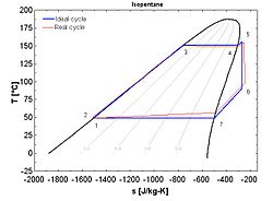 A T Vs S diagram for an Iso-pentane ORC Cycle is shown below.