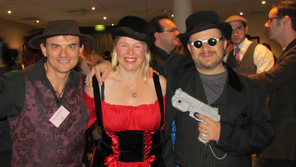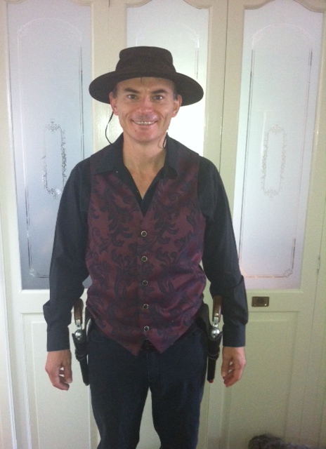 OK, I’ve managed to find two photographs. For the second one I had to dress up in my costume after I got back to Brisbane and get my wife Sandra to snap a one on her phone. It was only after I got back that I realised I should have been getting everyone to take photographs on my phone so I had some pics.