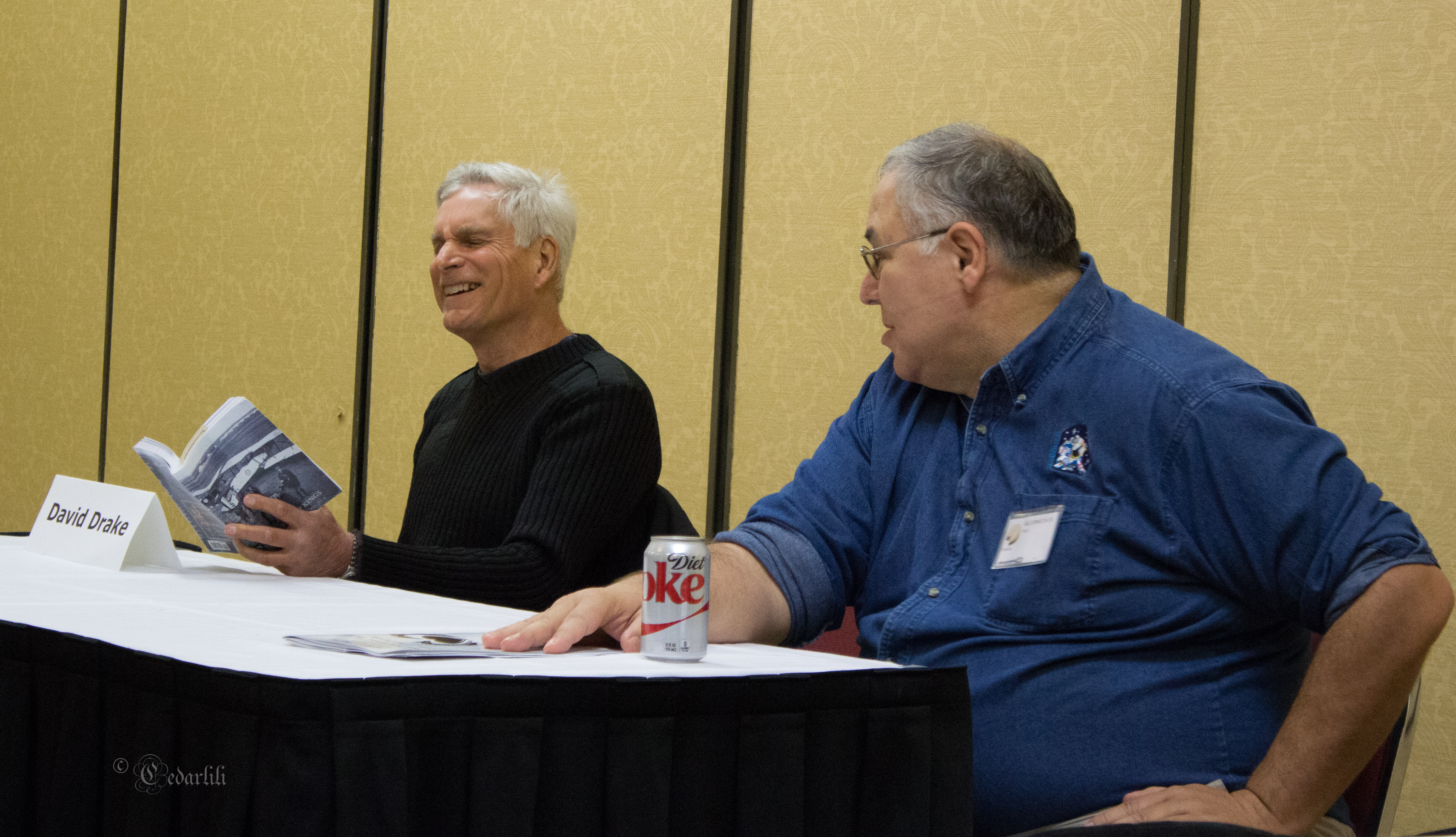 Drake started it off with his definition of Hard SF. First of all, he said, I don’t write hard science fiction, and I don’t read it for enjoyment. I consider what I write to be adventure science fiction, he told the audience. But if he had to define Hard SF, it would be: science fiction written by engineers, not scientists. The First Reader and I talked about this later. In his day job, he works with both. An engineer, he pointed out to me, will build by rule of thumb, It just needs to work. A scientist wants to know why it works, and can get hung up on some odd quirk of the machine rather than just accepting it works and moving on to what comes next.