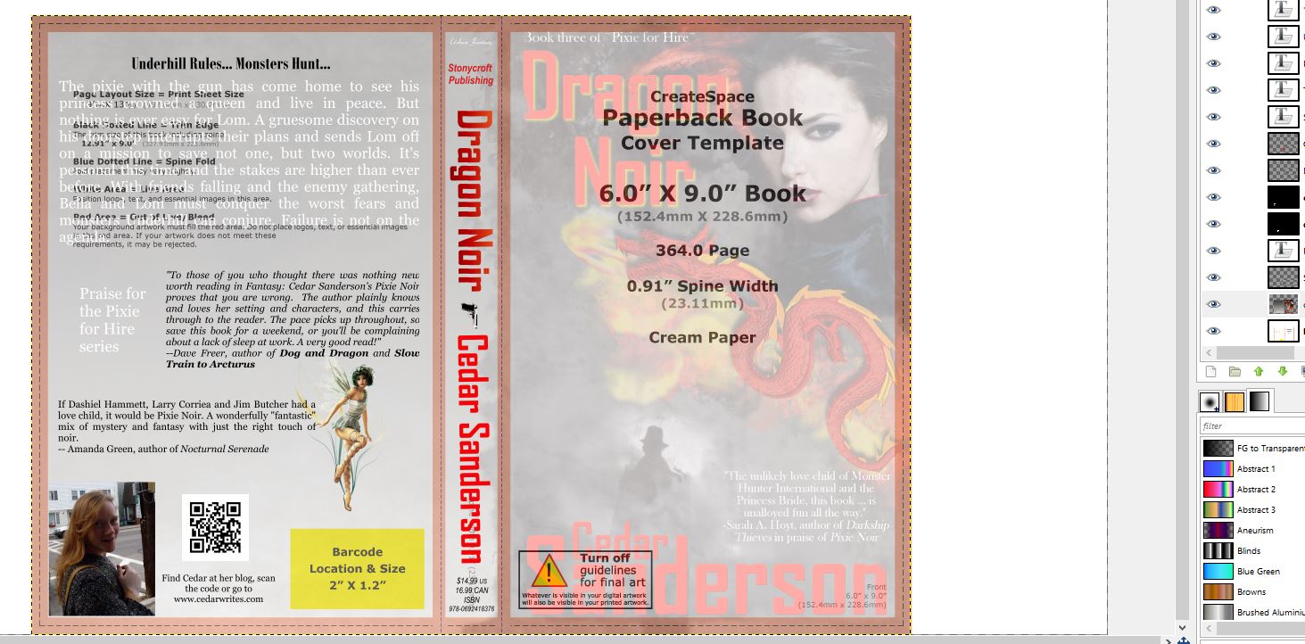 As you will see on the back cover for Dragon Noir, I have a tagline, a blurb, pull-quotes from reviews, an author photo, a call to visit my blog, a graphic element, and a QR code. I know, that is a lot of stuff going on in a small amount of real estate. All that, and you will note I avoid the barcode location, which is inserted by the printer, not you.