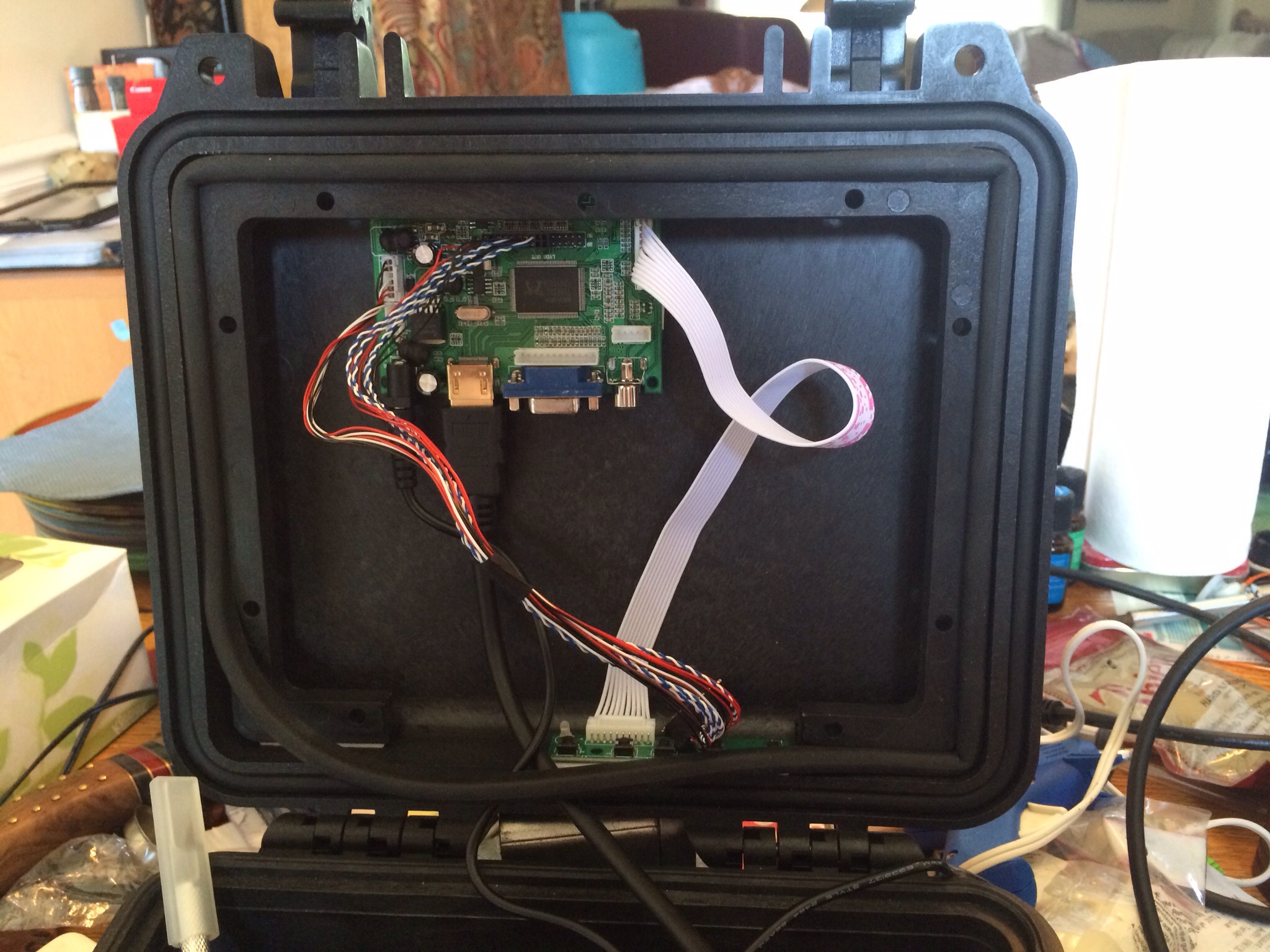 Wait, let me back up. I have a bare case, and a bare screen. No enclosures, no handy-dandy places to attach things. Back to Amazon!! Pelican also makes panel frame attachments for their various cases. It’s a bit of a frame you screw to the case, with sockets for attaching some form of panel (see what they did there?) , and a foam rubber gasket for shock absorption. It’s inexpensive, and gets the job done.