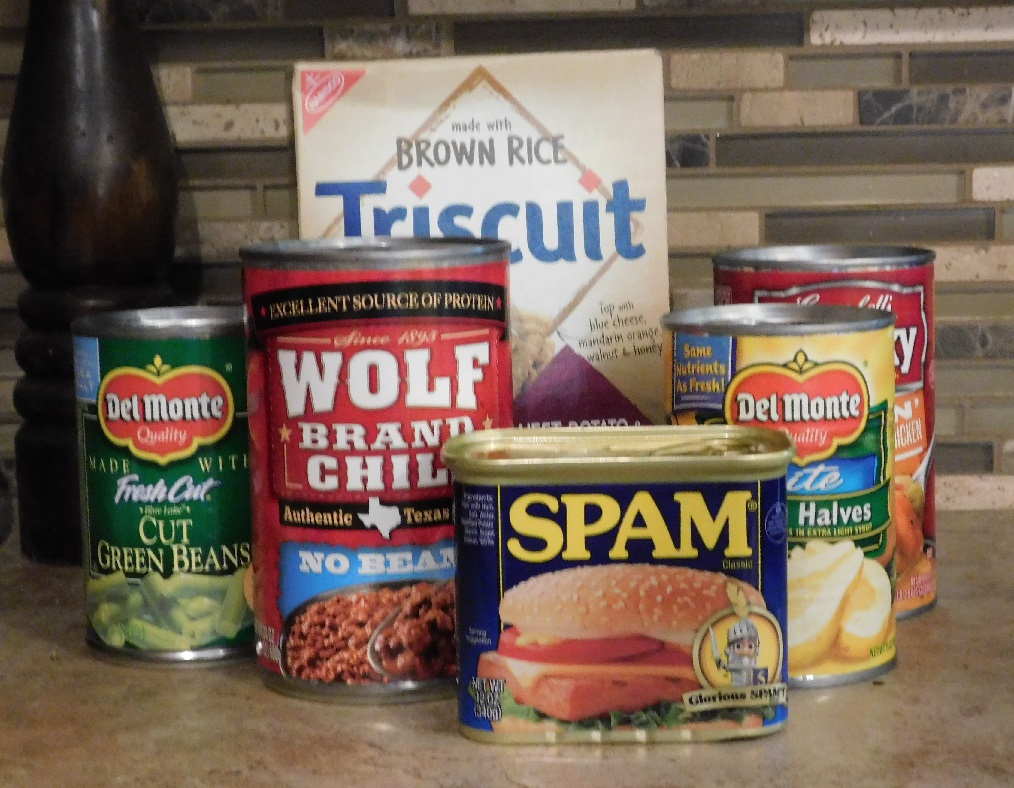 Okay, confession time. My husband and I like Spam. Which may be why I’m blanking on a mental equivalent of last ditch writer’s survival supplies.