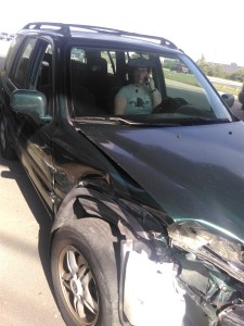 It all happened so fast. I didn’t fully process it for hours later, and this morning I’m still not sure I have processed it. The first words out of my mouth, I think, were to ask the First Reader if he were all right. He said he was, and a cop pulled over to help us, and then I sort of sat with my nice seatbelt hugging me and shook a little. Now that it’s been 15 hours since the accident, and I’m sitting here with sore muscles and stiff body, but no injuries worth speaking of, I’m thinking of what the accident meant to me as a writer, so I can justify venting at you all in this post.