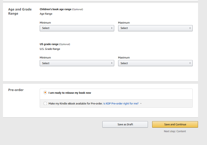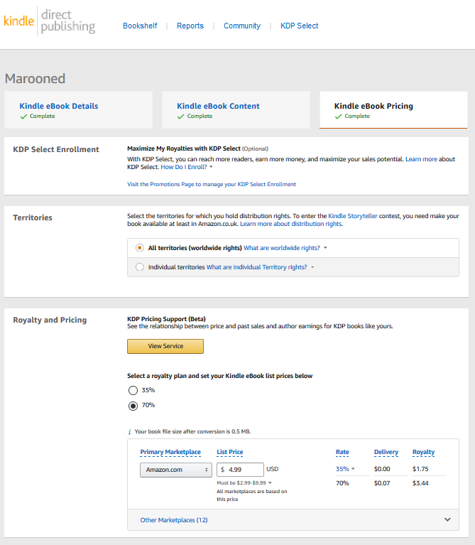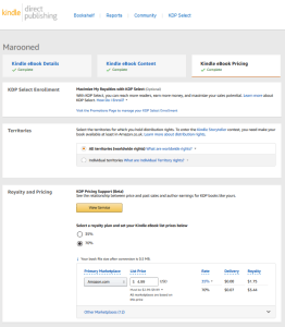 I, personally, like to have my books on KULL. As a mostly unknown author, I need those frequent readers to try me. So yes to being on Kindle Select, which doesn’t show here, but would have if it had let me get to the blank page two.