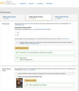 Now the big one. Upload your manuscript. Yes, the version with all the typos fixed, the legal page, the Active Table of Contents. (Don’t ask me often I sent the wrong file, because I’m not telling.)