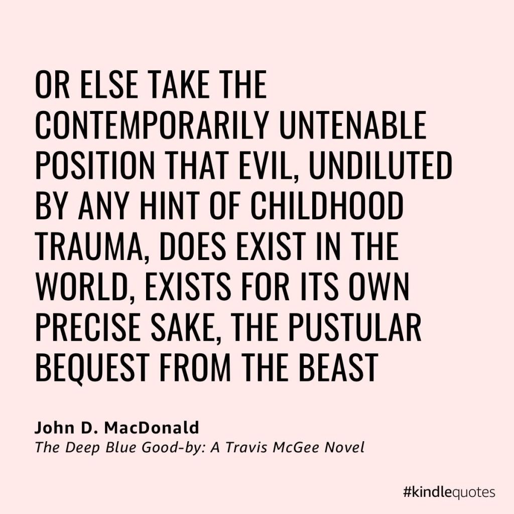 He, like MacDonald, is clear on one thing: we all need a dragon slayer. Travis McGee may seem an improbable one, a beach bum with a quixotic urge to help the helpless, but nonetheless as you read MacDonald from the beginning (Brass Cupcake) the bleakness of the Floridian sun-drenched horrors does not conceal the underlying message of heroic efforts in the face of certain failure.