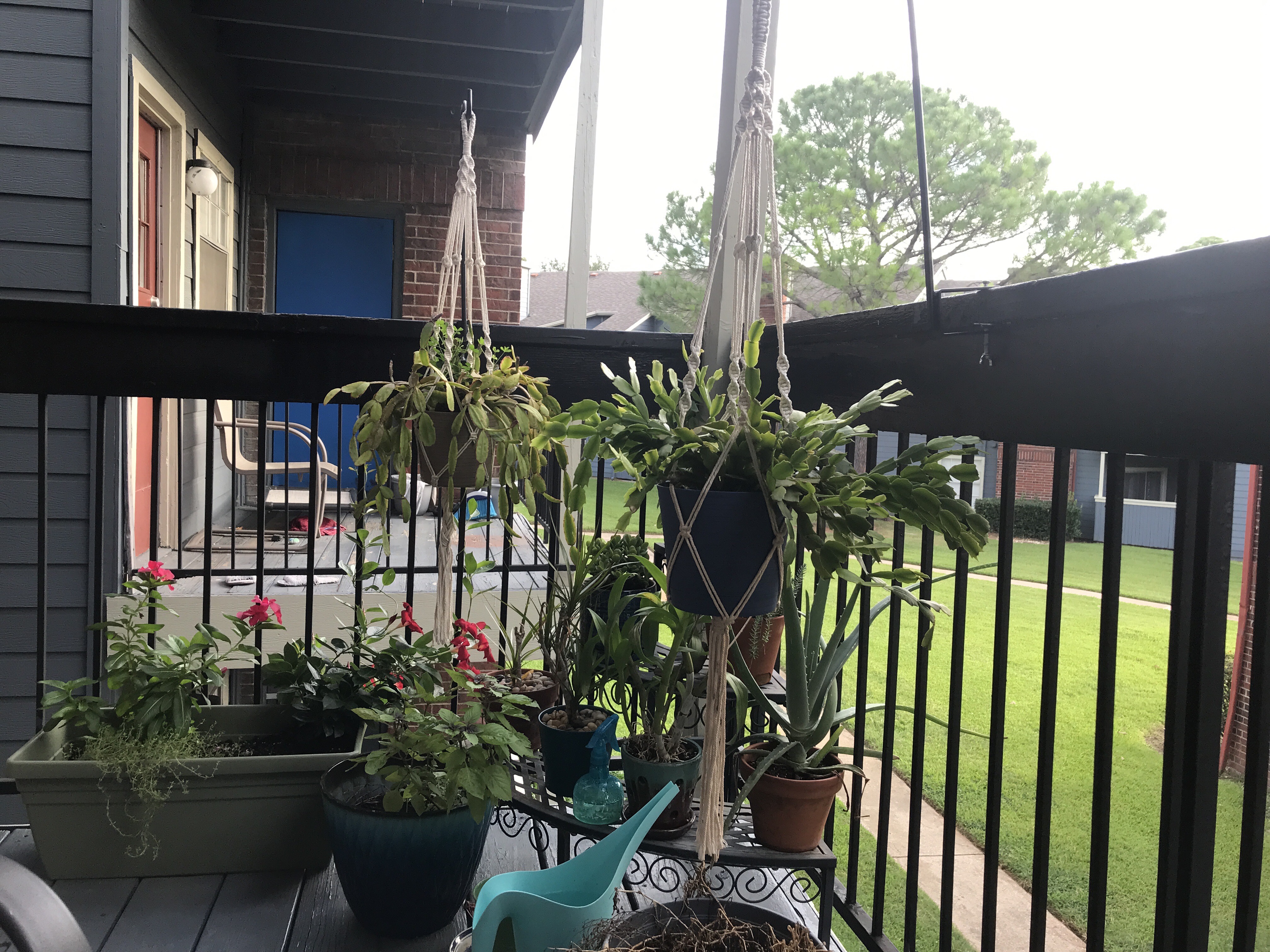 I seem to finally be collecting a routine around me. Get up, fill the coffee pot and water the keiki orchids while I’m there. Look out the kitchen window at the balcony, and if the basil is wilting, fill the watering can to water the balcony garden. Or this morning, since we’ve had so much rain, just grab my laptop and coffee cup and head out to enjoy the relative cool of the morning. On a weekday, I leave before it’s fully light, so I can’t take advantage of the fresh air – last night it was 101 and I’m not acclimated well enough yet to want to sit out in that. Put my feet up on the other chair where my husband ought to be sitting, and start talking to myself via typing.