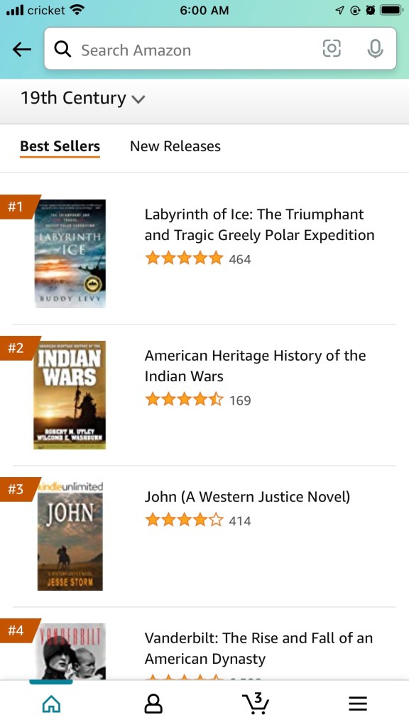 And again, not so bad but why is there a novel here? At least it’s a well-marked one as being a work of fiction. Indian Wars also signals novel, with that font and layout, but I don’t think it is. Confusing. Labyrinth of Ice really signals historical interesting well, but that’s not the right direction for the book I’m working on, which is (sorry, Grandma!) a bit drier than the historical drama the Labyrinth cover implies. So!