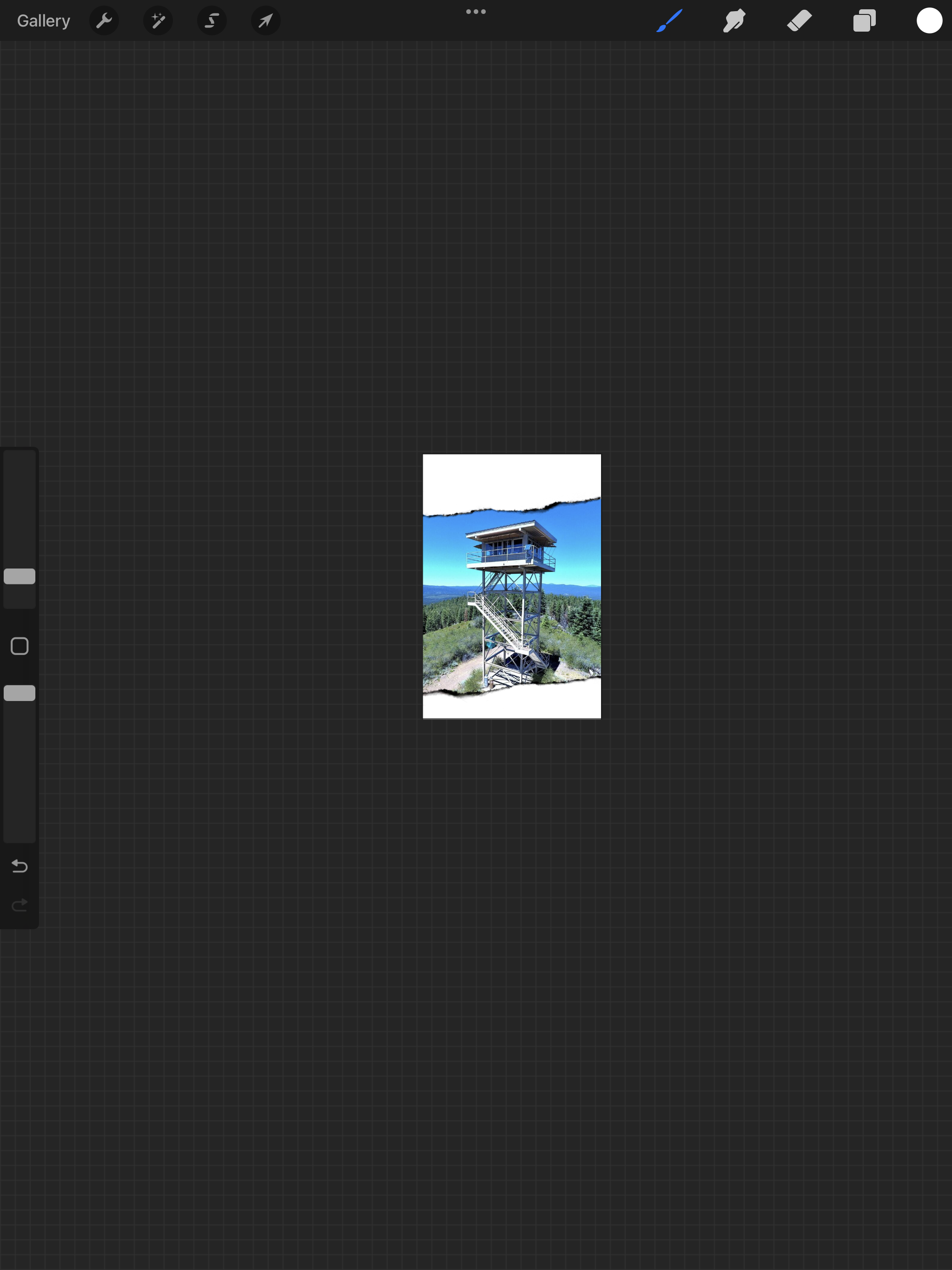 I’m screenshotting my workspace, so you can easily see the thumbnails. I do this while I’m designing, shrinky-dink the art, so I can make sure I’m on the right track. I’m using my Grandpa Ron’s photo as-is, with his edits to tweak the color, because it is so vivid and saturated it’s eye-catching. It’s not unreal, either, as anyone who has been hiking up in those mountains will assure you. I’m using a torn paper effect to set the photo off from the page, and give it some dimension while allowing me a little room to lay out text for title and authors.