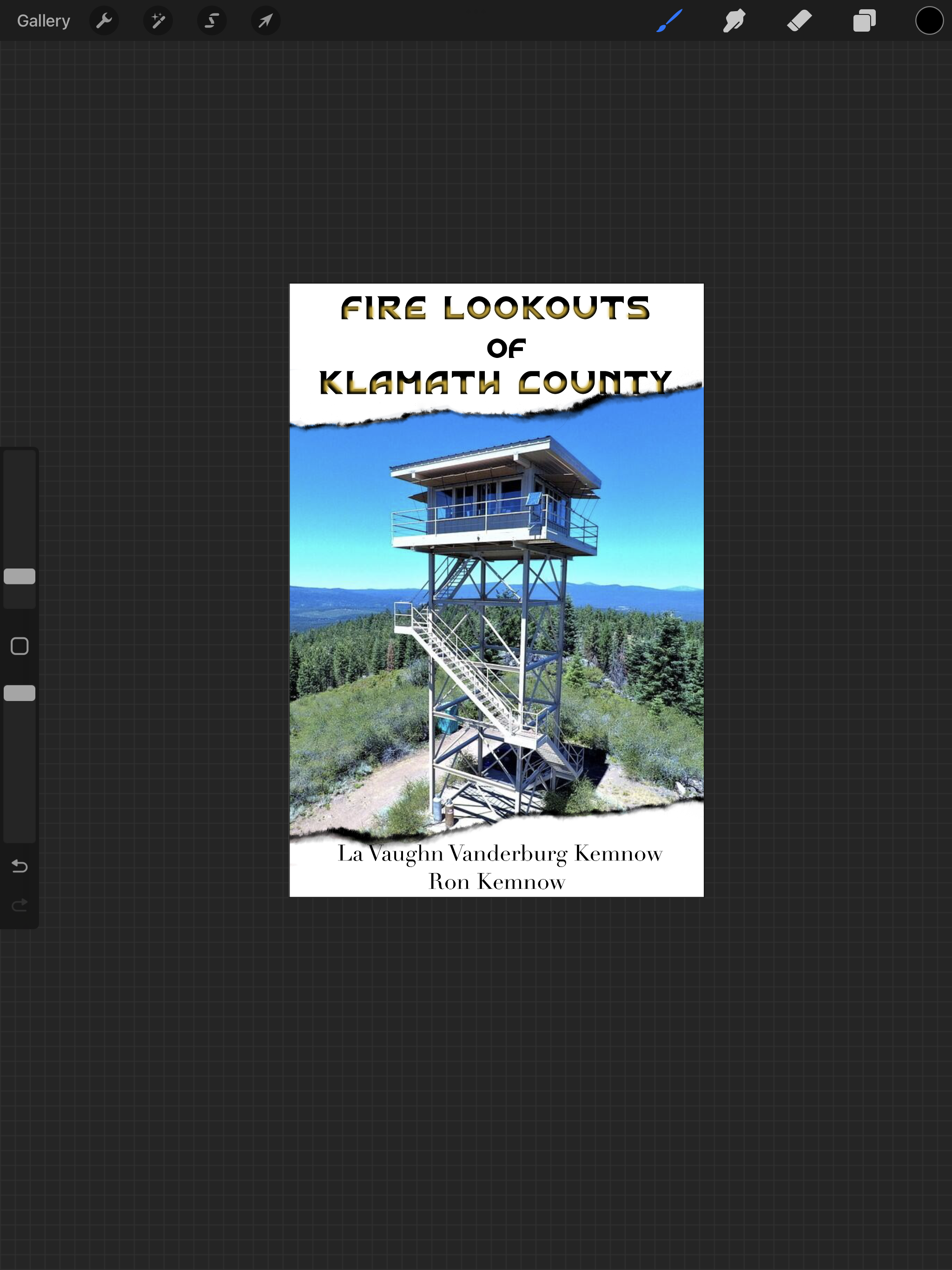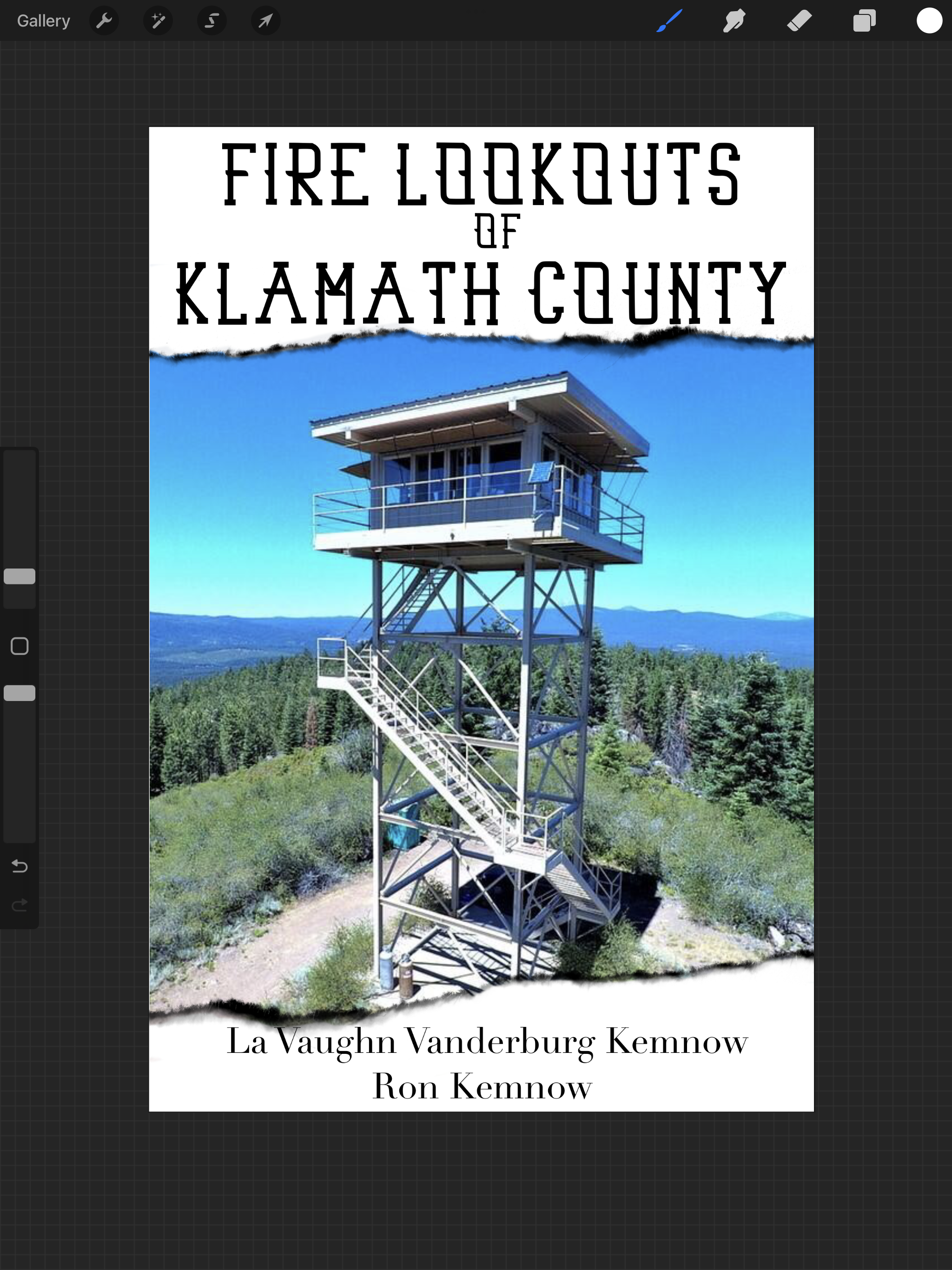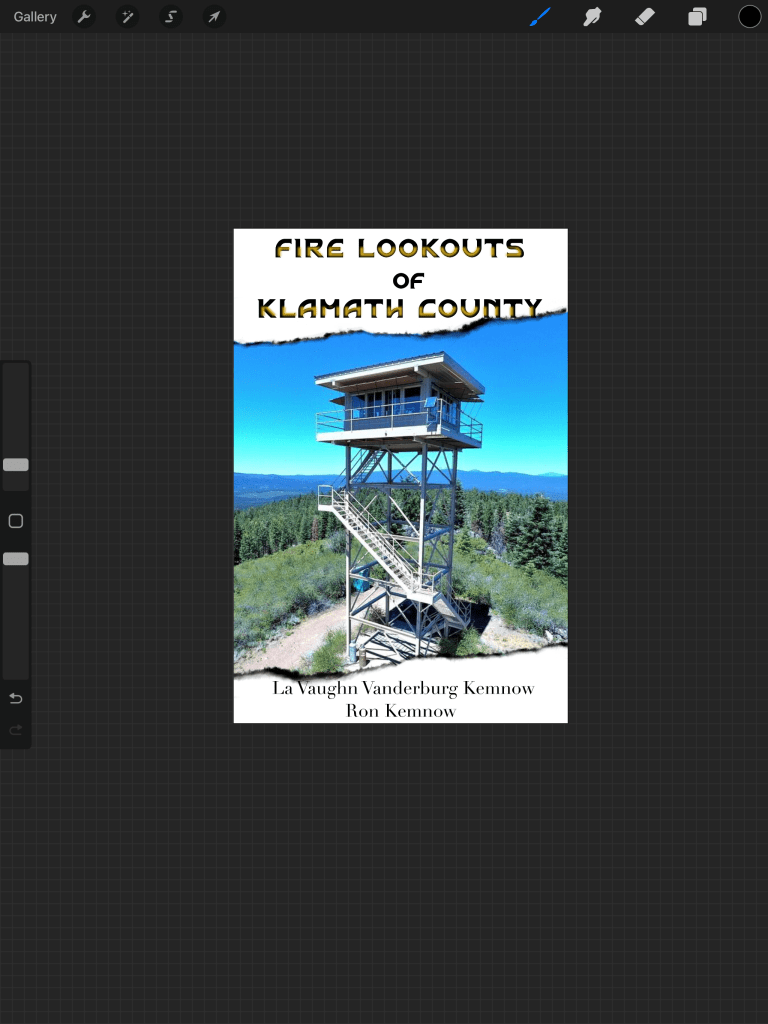 The criteria for this cover are very different than they would be for a novel. For one thing I’m using a photo – in this case, taken by Ron Kemnow of the fire lookout at Parker Mountain. I have several gorgeous photos my grandmother sent me that Ron took, but I am choosing to use just one, rather than do a collage on the front. As I told her, this has to pop at thumbnail… and from across the giftshop in the historical society museum. It’s a very niche book, and I understand that the market for it is going to be looking for a couple of markers: one, that iconic fire lookout image, and two, it has to signal history.