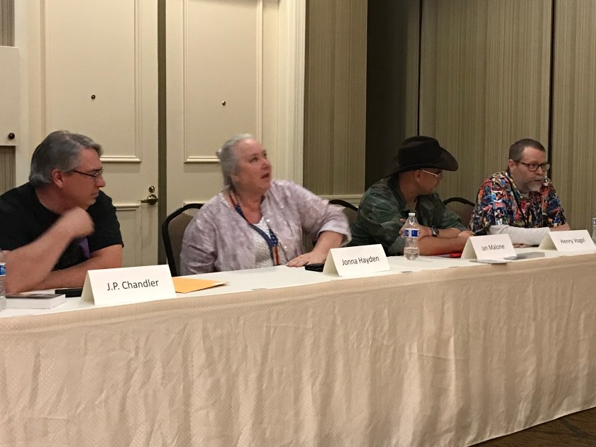 Is Indie the new pulp? I certainly hope so! There are a lot of parallels. Including with some people thinking that rather than a wave of innovation, they are a tsunami of crap. Am I saying all pulp is good reading. I am not. I collect pulp. I aspire to write pulp. I do not think that what I write is crap (don’t ask me that question right after I finish a book, though), I don’t think what Henry Vogel (one of the panelists) writes is crap. In fact, learning more about his background in Indie Comics (who, as he point out, did this before publishing, as did music), made me regret not having read more of his sword and planet series, which I will rectify soon.