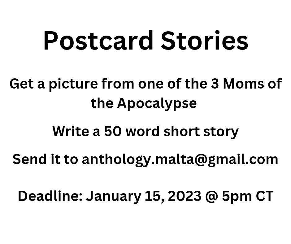 Kortnee Bryant, who writes as CV Walter (and possibly other names) came up with this particular challenge for her appearance at MARScon this weekend. If you’re at the con, find Jonna Hayden or Kortnee and they will give you a postcard to write your 50-words story on the back of the image prompt. If you aren’t there, ping me (at cedarlila at gmail dot com or any social media) and I’ll give you a unique image prompt. When you’ve managed – if you can! – to write a 50 word story, send the image and story to the email address above. Kortnee and Raconteur Press have a very special anthology planned for those who succeed admirably in this challenge.