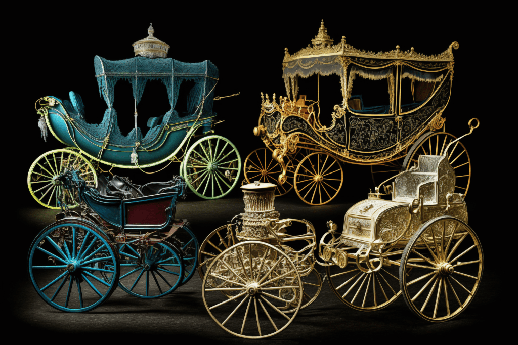 - Barouche (German/pseudo-French term going back to Latin “bi-rotus” (though actually 4-wheeled)).