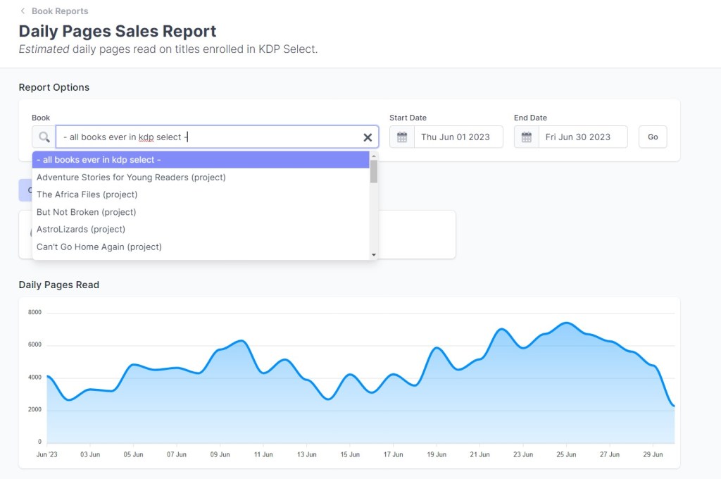 You can also track how many pages readers are consuming, with the Daily Pages Read Report. This enables you to see if there are trends, decide when or if you should take a book out of Kindle exclusivity and distribute it widely, or just get an idea of how a project is doing. Not all projects will be in KU, and that’s fine.