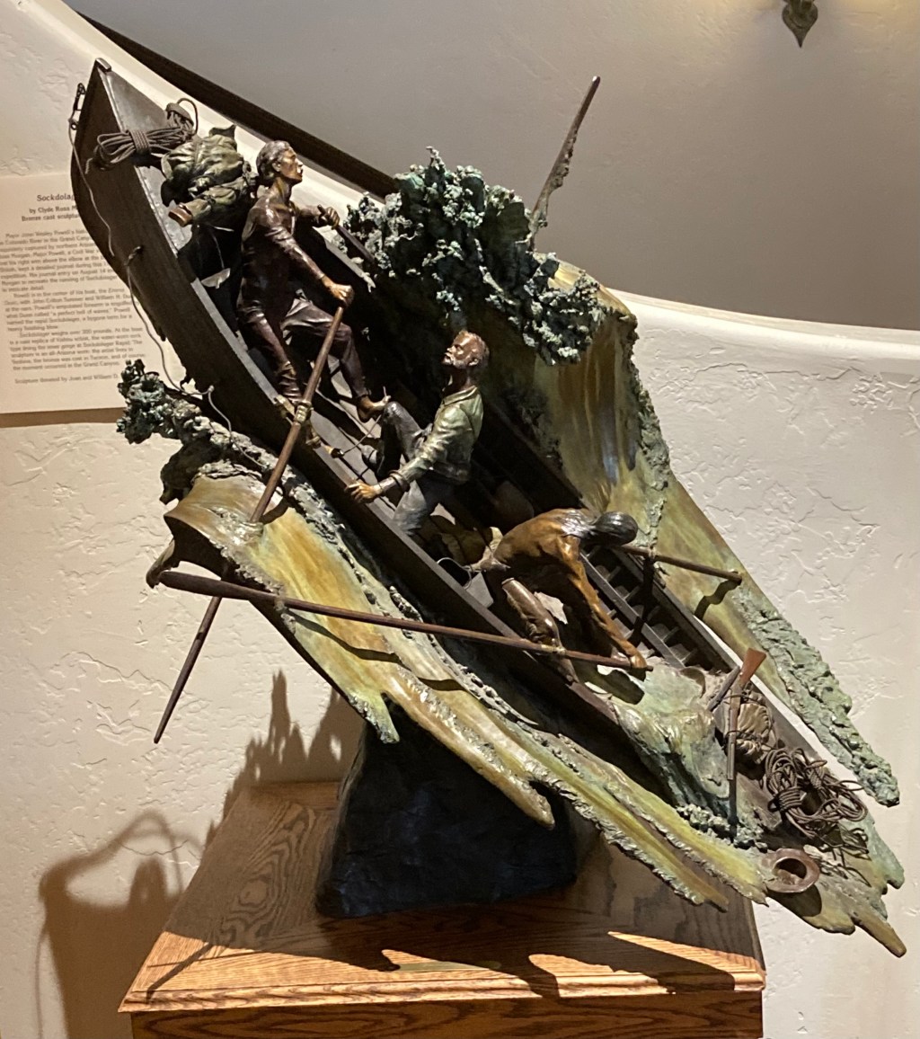 Image credit: Man vs. Nature in the shape of the Colorado River. “Sockdolager” by Clyde Ross Morgan, in the Museum of Northern Arizona. Author photo, July 2023.