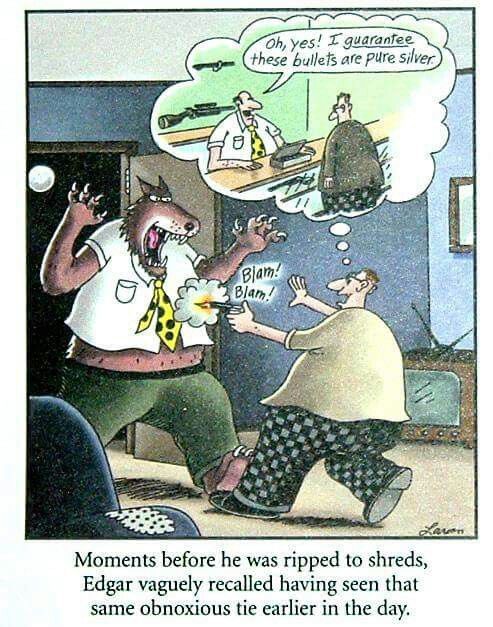 But look at this comic panel (sorry, couldn’t find a higher resolution version). As in a crime novel, the POV character can put the pieces together to identify the assailant. But neither he nor the reader could possible have anticipated that from the salesman’s guarantee. So, the salesman’s guarantee holds the logic of the plot together, but that’s all — it’s not foreshadowing. It generates surprise, for both the POV character and the reader, but no suspense.