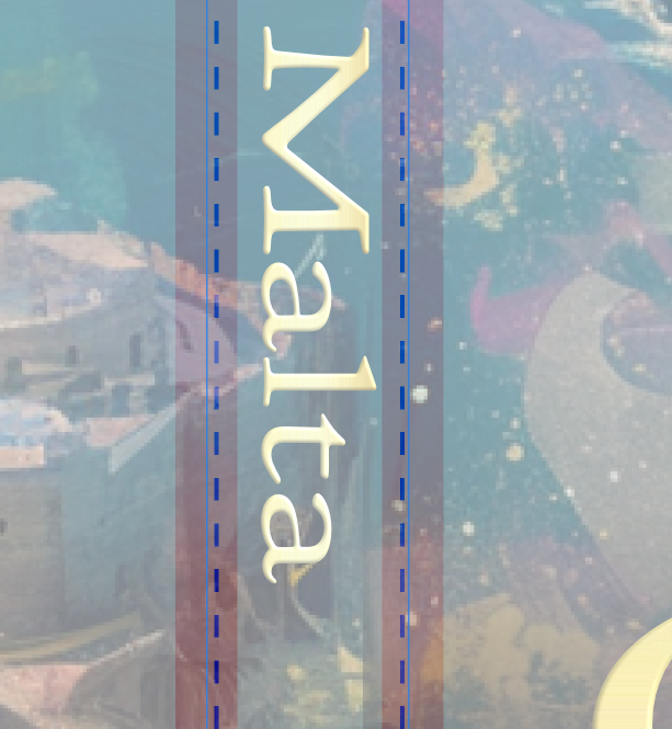 Now, I’ll take a look at the text elements to make sure that they are well away from the red (pink when transparent like this) zones. If not, I’ll open my ebook layers file and move them there, independently, until they are satisfactory. Next, create the lettering for the spine. If you hover over the top deely-boop, you’ll note that it will allow you to click on it with the cursor tool and rotate the whole text box. If you also hold down the shift key, then it will rotate in precise increments, allowing you to rotate a perfect 90% for placement on the spine in correct orientation.