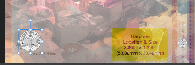 Having toggled off the template, I can see that the upper corner of the art with this white text on it isn’t easy to read. I’ll place a transparent, blurred, rectangle below it to increase the contrast.