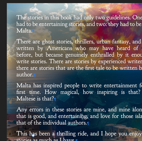 I may have covered (you should excuse the pun) this topic before, but when I looked to give a link to a friend, I couldn’t find it. Also, it is good to revisit tutorials every couple of years as things do change. While this is targeted towards creating the pdf file you will need for an Amazon kdp paperback format, I know from the experience that the file so created will also work for an Ingram Spark paperback just as well.