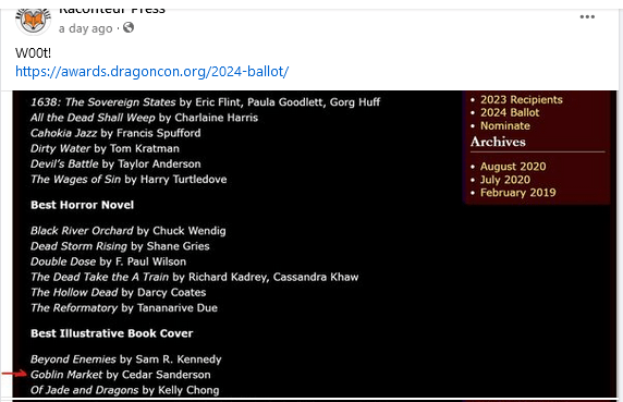 But I know a lot of people are seething over this, and before we assume the worst about the Dragon awards, they should be given a full opportunity to explain themselves on the disappearance of Cedar from the ballot. Every possible chance, in fact.