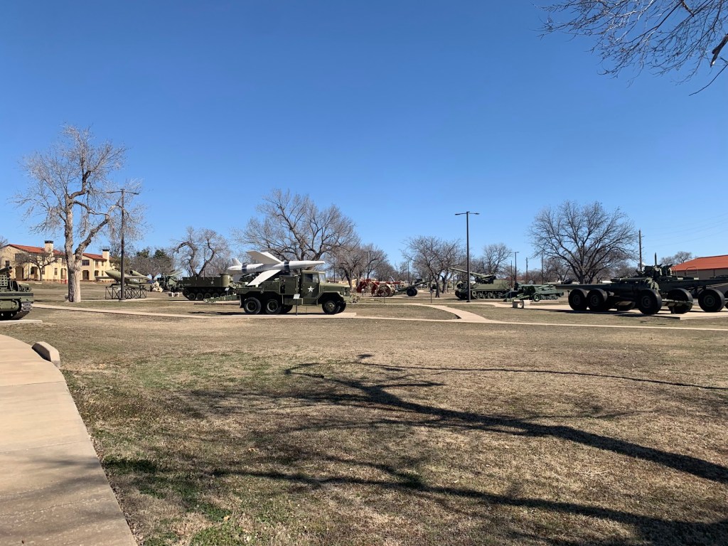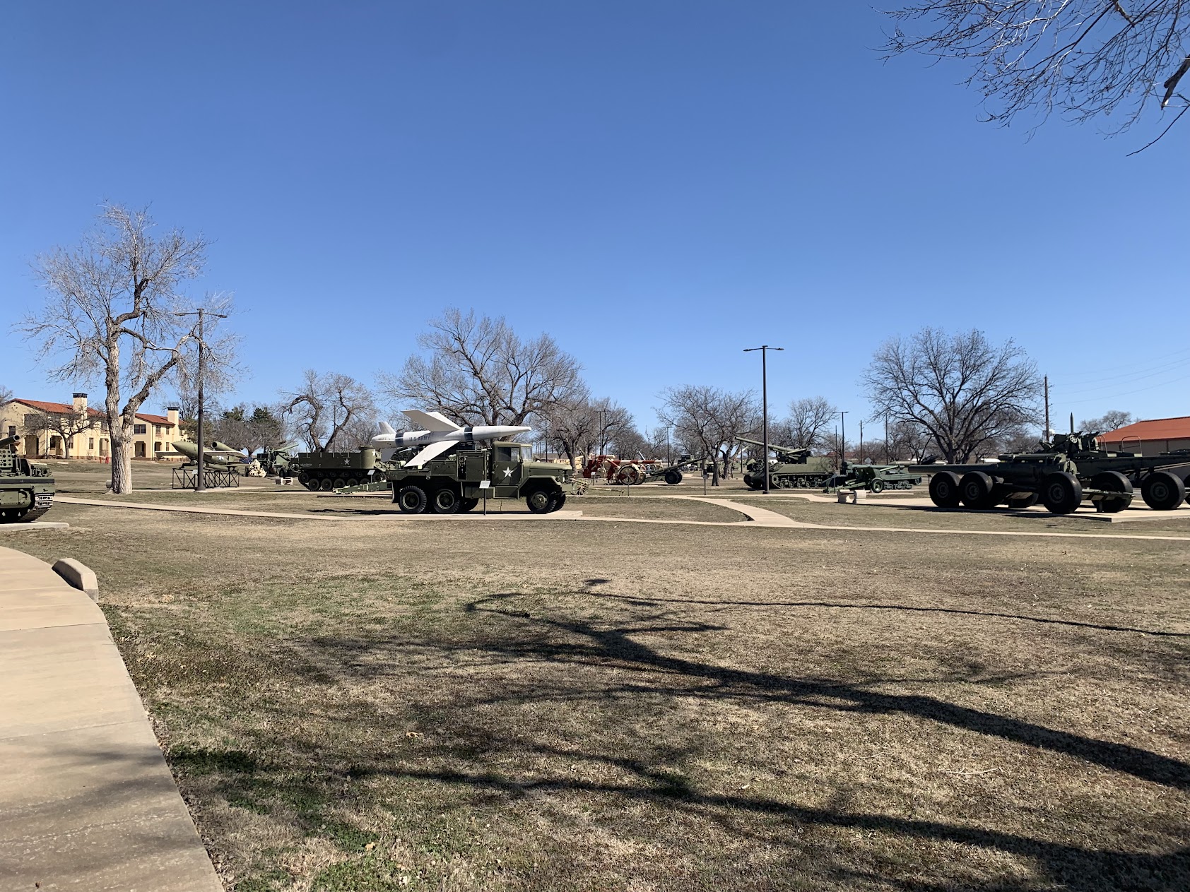 However, there comes a time when books alone will not do. When you want to get up close and possibly even touch the research. Which is what I did yesterday. Only… I don’t know yet what I was researching. You see, we did a spontaneous side quest. We’d drive up into Oklahoma, to have a Date outing which involved plans for a Korean restaurant and the acquisition of pickle loaf. That morning, there had been a video on the artillery museum at Fort Sill that popped up, so the First Reader of My Work and Best Beloved suggested we take in the museum since we would be right there. Some time, and slight confusion later (we didn’t realize the museum was wholly on base, as the USAF museum isn’t, fortunately it was easy enough to get visitor’s passes) we were wandering around the outdoor display. I think there’s an indoor part, we didn’t find that and, well, I didn’t want to ramble over the base too much.