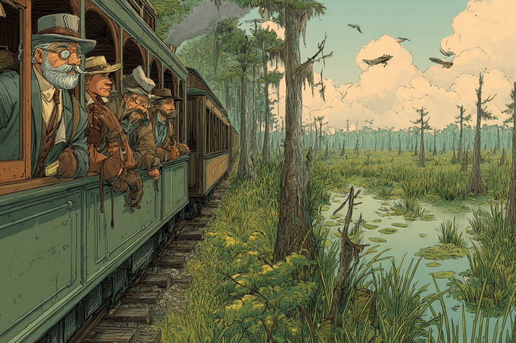 Next, I have to decide how much of this to elide over. If I follow just the expedition on it’s long, doubtless tedious path (mosquito-equivalents, swamp monsters, treachery) it could consume a book-length segment of it’s own. But that’s not what this book is about. Which means that I’ll write highlights, with bridges up and over the boring bits, until I get to where I want to be in roughly eight chapters. While keeping in mind the ultimate goal of the plot. Character development on this sort of thing tends to be the kind that happens naturally. If you can call itching from head to toe ‘developing’ that is. I’ve spent time in tundra, which is a swamp with a solid sheet of ice three feet under it. The mosquitoes call it heaven on earth. Humans call it something else.