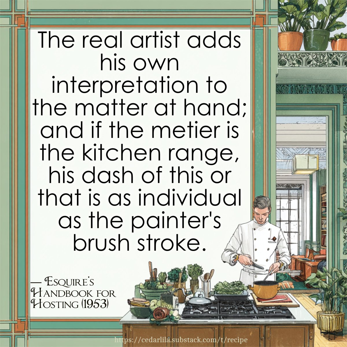 In terms of indirect marketing, I’ve been creating interesting things and putting them on my social media feeds to give more for followers to look at and react to. If you follow me, you’ve likely seen the food graphics I’ve been posting, those are from an afternoon sitting down with a stack of cookbooks (I have hundreds) and a notebook pulling catchy quotes out of them. I then put the quotes on square graphics, and scheduled them for weeks in advance on X and facebook (you can’t schedule Substack Notes). You don’t have to do this – and likely shouldn’t, unless like me you plan to release a cookbook in the future – you could do this with literary quotes, or anything that interests you. Why interests you? First of all, so you can be enthusiastic in responding to comments, and not bored creating them. Secondly, because what interests you will bleed into your books. By finding mutual interests, you are building a base of readers who are likely to enjoy your work.