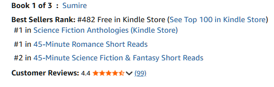 I was surprised, and pleased, to see this happen. There are readers who haunt the freebies, what are sometimes called whale readers. Voracious readers with more time than budget, they are what drives Kindle Unlimited, too, and most of my books are available to them. So! It will be something I’m looking for, an uptick in KENP reads.