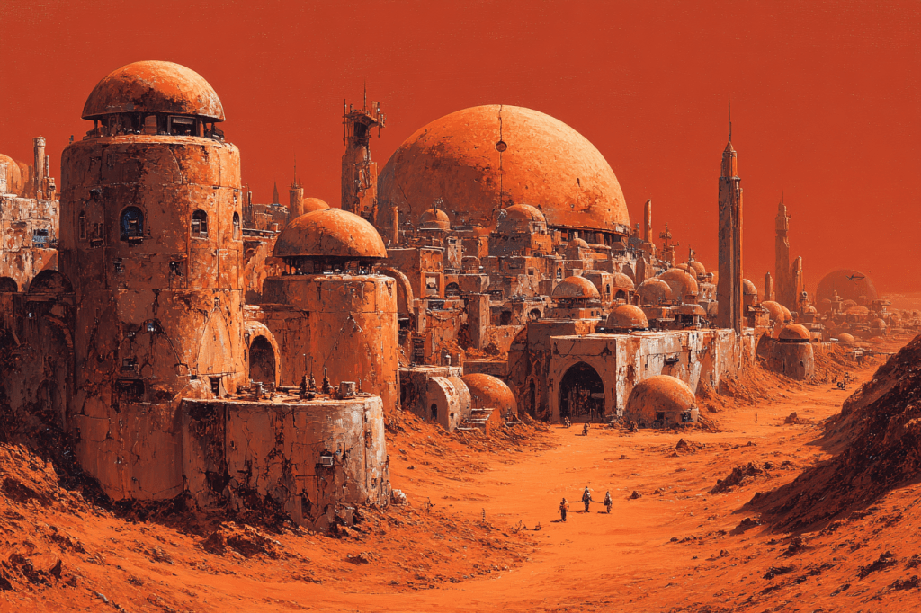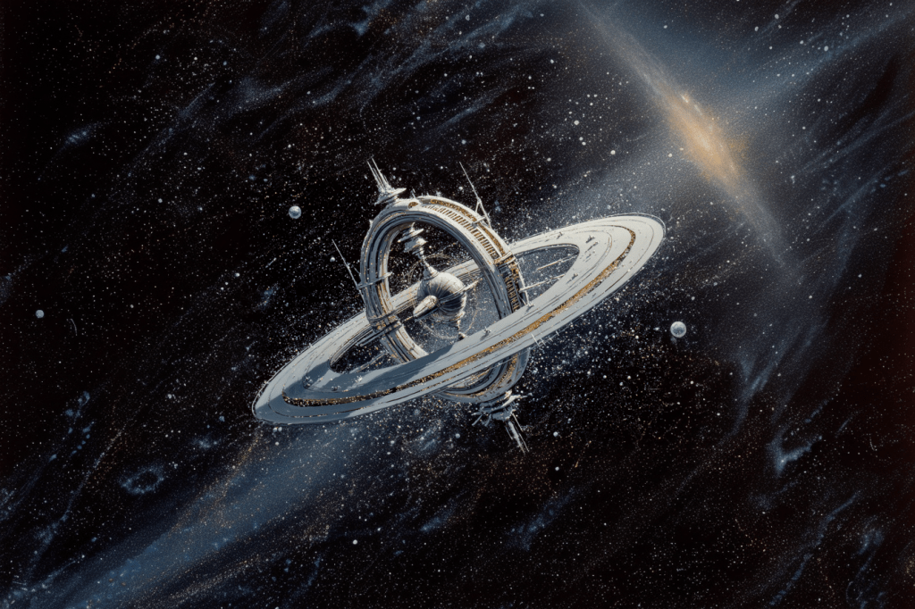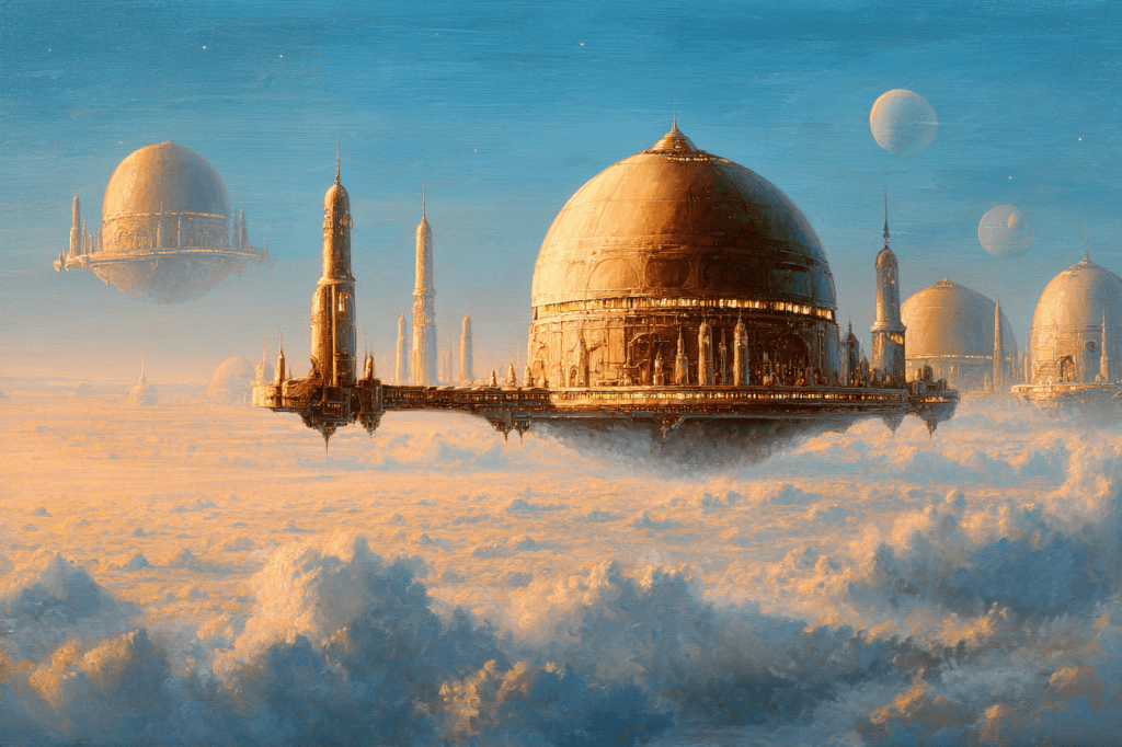 My Discord, Book Club with Spikes, does a monthly art challenge nigh continuously at this point. Most of the participants are honing skills with AI art tools, some of them are just taking part for the fun of it, and it’s really enjoyable to see what everyone comes up with. This month, while I’m usually trying to do physical skill-building, I’m leaning into the AI as I’ll be traveling for my Dad’s memorial service and to see family and don’t anticipate the physical or mental energy for much extra. The group put together a science fictional list of prompts variously (it’s always fun to see this happen) and I’m making art from that list.